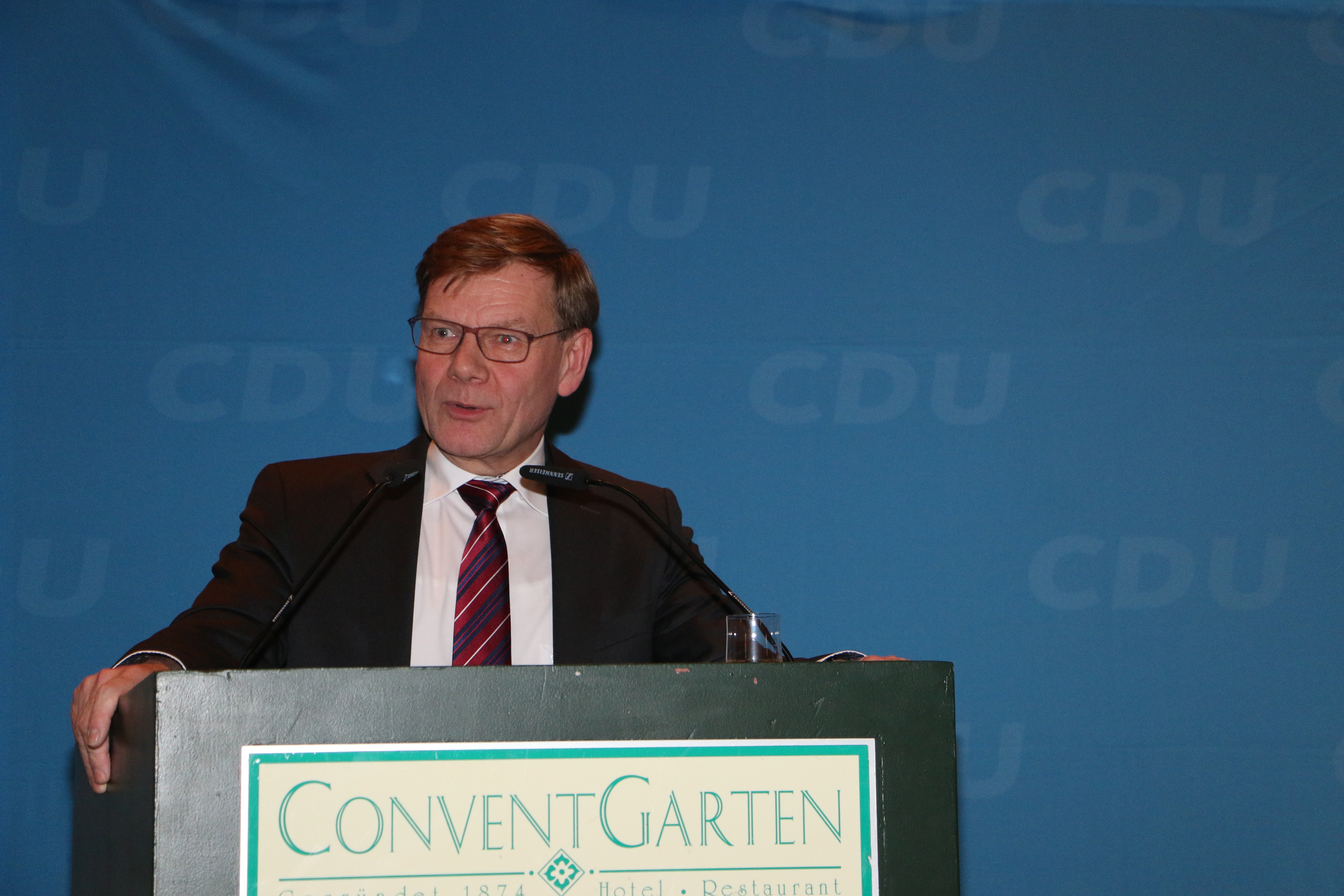 Johann Wadephul dankte allen anwesenden Haupt- und Ehrenamtlern für ihr Engagement für den Kreis Rendsburg-Eckernförde und darüber hinaus. Vor allem würdigte er die Arbeit derjenigen, die anderen im Katastrophenfall zur Seite stehen: den haupt- und ehrenamtlichen Helfern des Technischen Hilfswerks und der Feuerwehr. Einen besonderen Dank schickte er auch in Richtung Bundeswehr und der Kameradinnen und Kameraden, die für uns im Auslandseinsatz sind und damit einen unermesslichen Beitrag für unser Land und Europa leisten. „Das Einstehen für unsere Werte Freiheit, Solidarität und Gerechtigkeit und das Bekenntnis zur Europäischen Union als Friedensunion wird uns in Zukunft mehr Kraft abverlangen – gegenüber dem Ausland und auch im eigenen Land.“, sagte Wadephul mit Blick auf die bevorstehenden Wahlen in Schleswig-Holstein (7. Mai 2017) und des Bundestags (24. September 2017).