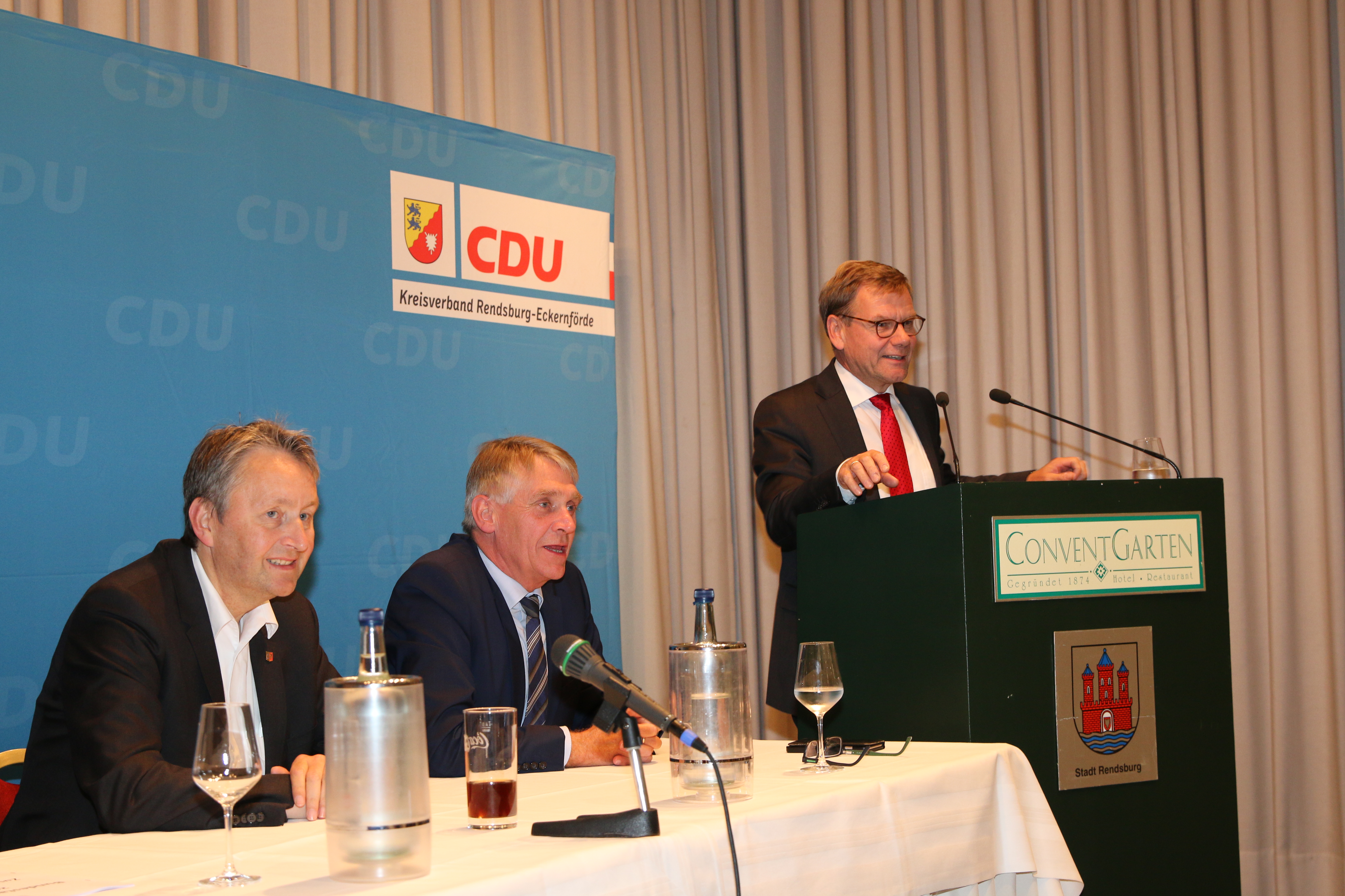 Einen Tag nach der Bundestagswahl fand im Rendsburger ConventGarten die Wahlnachlese der CDU Rendsburg-Eckernförde statt. Dabei sprach der Kreisvorsitzende Dr. Johann Wadephul, MdB, den anwesenden Gästen seinen Dank für ihre Mithilfe im  Wahlkampf aus:  „Ob beim Tür-zu-Tür-Wahlkampf, bei Ständen der CDU auf der Norla oder auf dem Rendsburger Herbst oder beim Plakatieren – die Mitglieder der Ortsverbände haben einen außerordentlich guten und engagierten Wahlkampf für mich gemacht, wofür ich mich herzlich bei Ihnen und Euch bedanken möchte.“ Besonders positiv stimmte Wadephul, dass die CDU erstmals in der Geschichte des Kreisverbandes bei einer Bundestagswahl in allen Kommunen, auch in traditionellen SPD-Hochburgen, die Mehrheit der abgegebenen gültigen Erststimmen holen konnte. „Daher können wir als Kreisverband zu Recht von einem historisch guten Ergebnis sprechen, das in erster Linie das Verdienst unserer freiwilligen und hauptamtlichen Helferinnen und Helfer ist.“